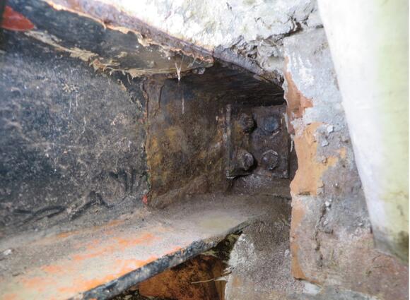 Ter plaatse van de oplegging in de gevel worden de stalen liggers volledig door metselwerk omsloten. Hierdoor kan het gebeuren dat de stalen ligger langer vochtig blijft en er een milieu ontstaat waarbij het roestproces sneller gaat.